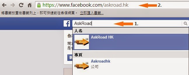 2. 於網址列輸入facebook.com/askroad.hk連結到AskRoadHK的Facebook頁面