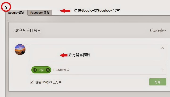 5. 若想留言問路, 可選擇Google+或Facebook留言